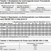 KALKSANDSTEIN Brandschutz Tabellenwerte.